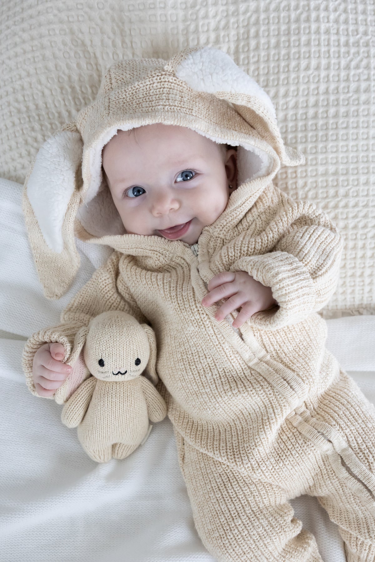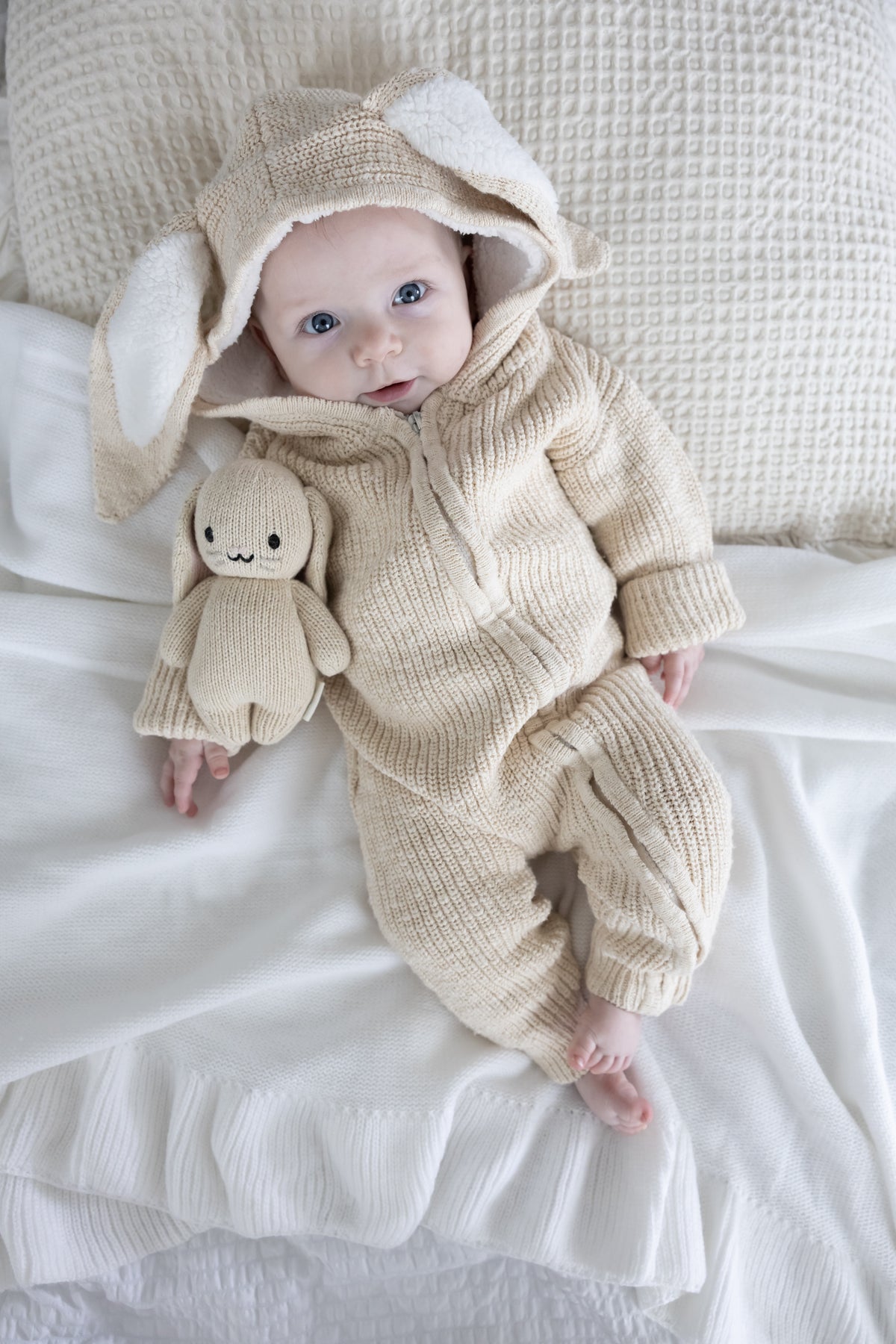 Some pieces are made for moments you'll never forget. The Cottontail romper — in the most beautifully neutral oatmeal knit — is one of them. Thoughtfully crafted in pure cotton knit, for the moments worth celebrating — and the blessings worth cherishing.