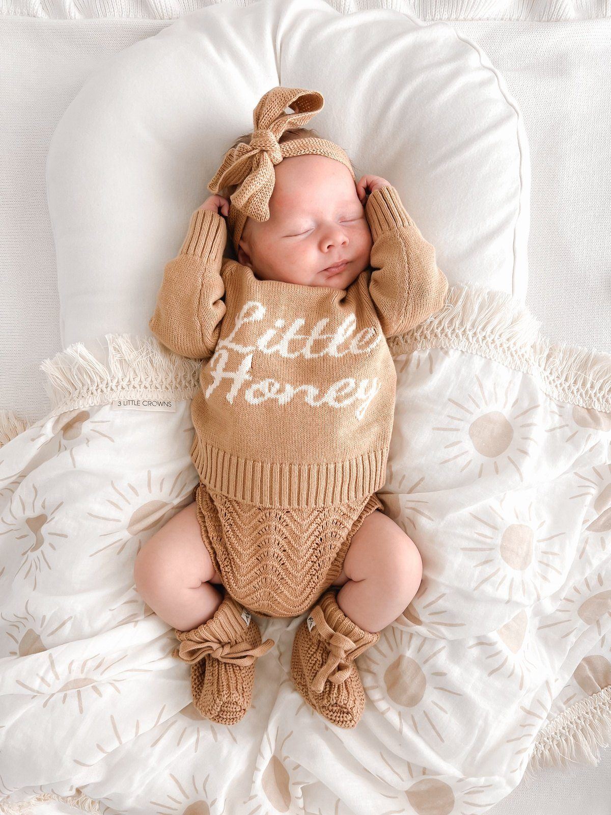 Our signature Little Honey Jumper! A gender neutral, oversized design with plenty of room to grow and get the maximum wear out of. A hospital bag staple and the most adorable piece to announce to the world your Little Honey is here.