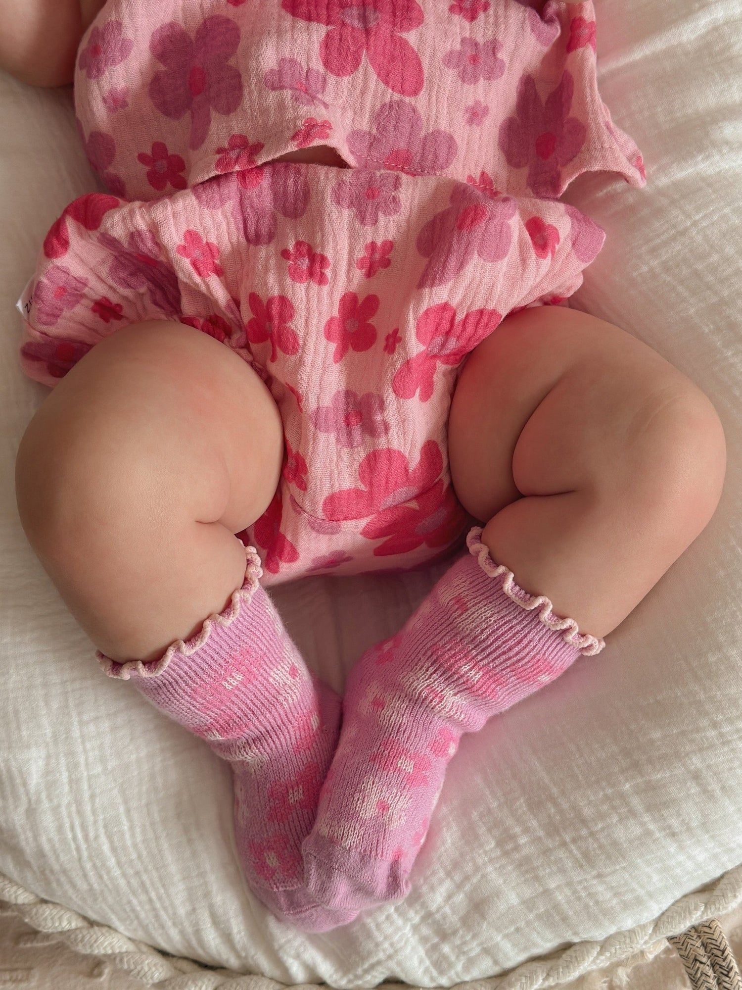 Linen blend bloomers with an elastic waist featuring our Cora floral print.